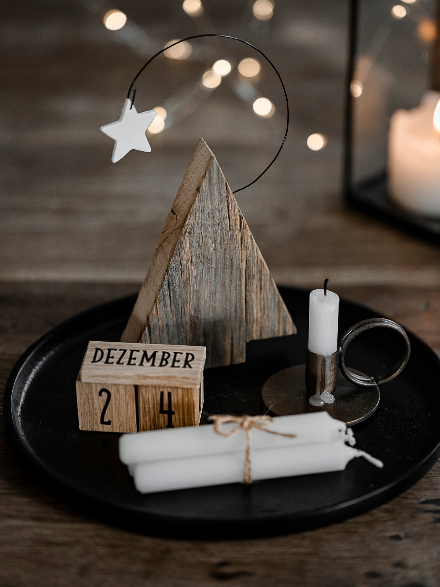 Ganz nach dem Motto, weniger ist mehr. Ein Adventskalender, der dich jedes Jahr durch die schönste Vorweihnachtszeit begleitet. Mit dabei ist eine rustikale Tanne aus Altholz mit Stern, Zahlenwürfel zum Herunterzählen der Tage bis zum Fest oder einfach um das Datum einzustellen, 4 Kerzen mit passendem Halter und natürlich dürfen die Zündhölzer auch nicht fehlen. Alles, was du brauchst, um die Adventszeit stilvoll und unkompliziert zu gestalten, ohne Schnickschnack, dafür mit ganz viel Charme. Praktisch in einer schönen Box verpackt, bereit zum Verschenken oder Selbstbehalten.