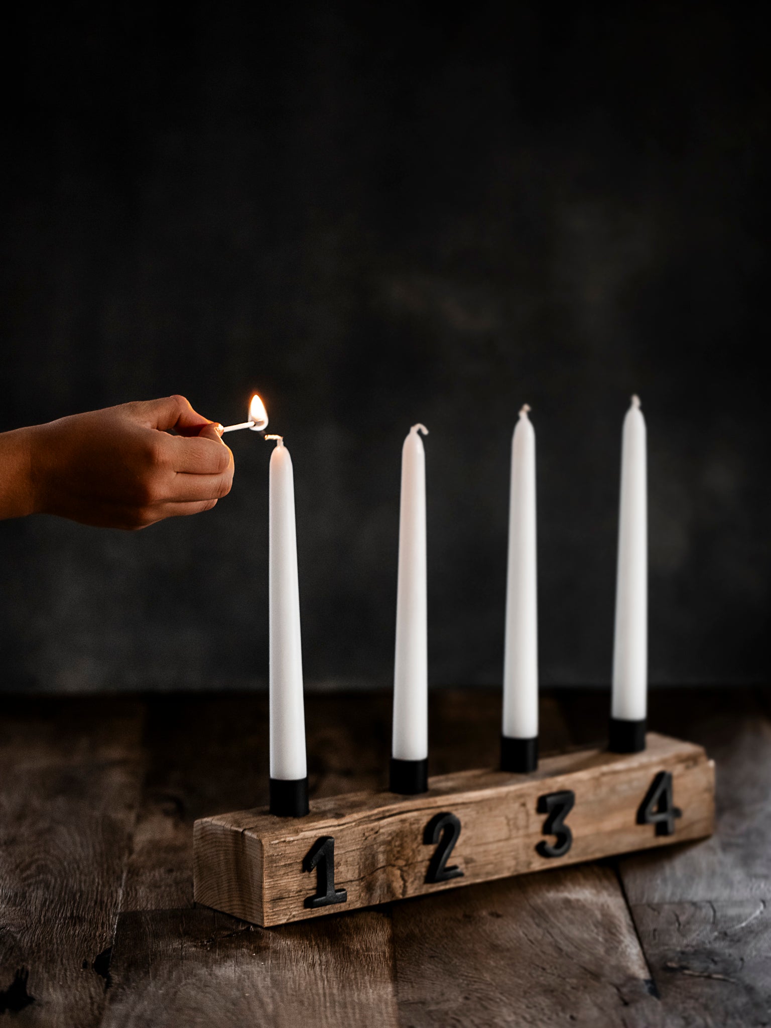 Um die halbe Welt ist er gereist, dieser alte Holzbalken. Er diente über Jahre dem Transport, musste der schweren Ladung auf dem Lastwagen stand halten. Heute darf der Balken in den wohlverdienten Ruhestand, majestätisch steht er da mit seinen 4 Kerzen. Das rustikale Holz verleiht diesem Set zeitlose Eleganz und macht es zum Lieblingsstück auf jedem Adventstisch. Schlicht, stimmungsvoll und immer wieder wunderbar.