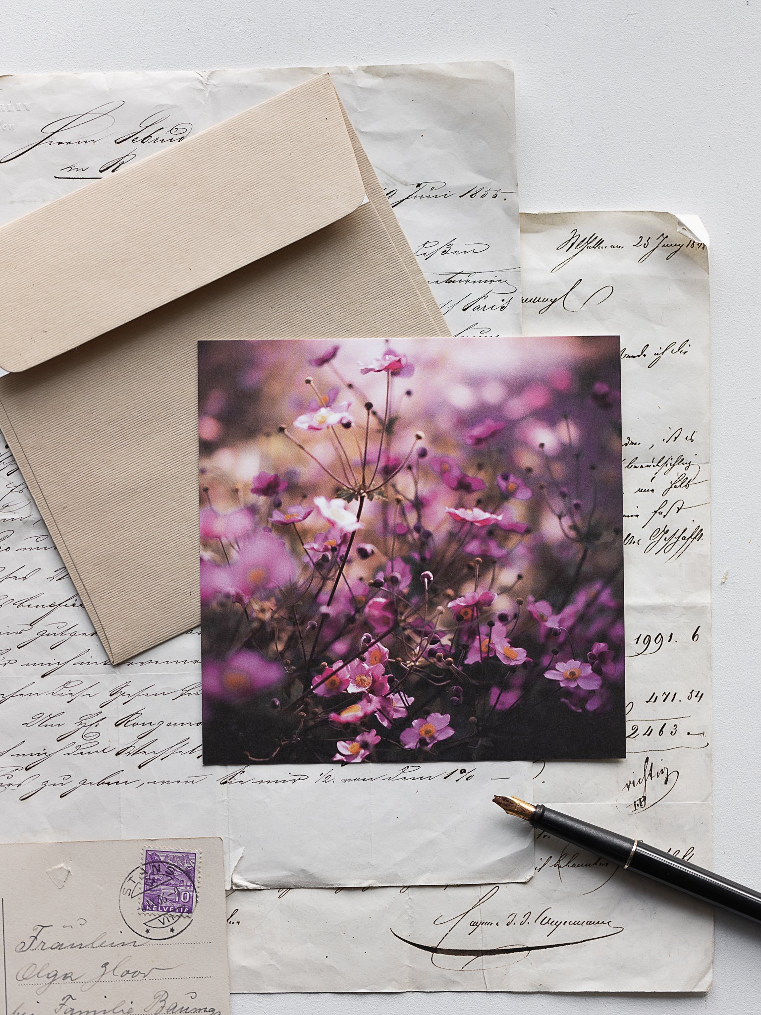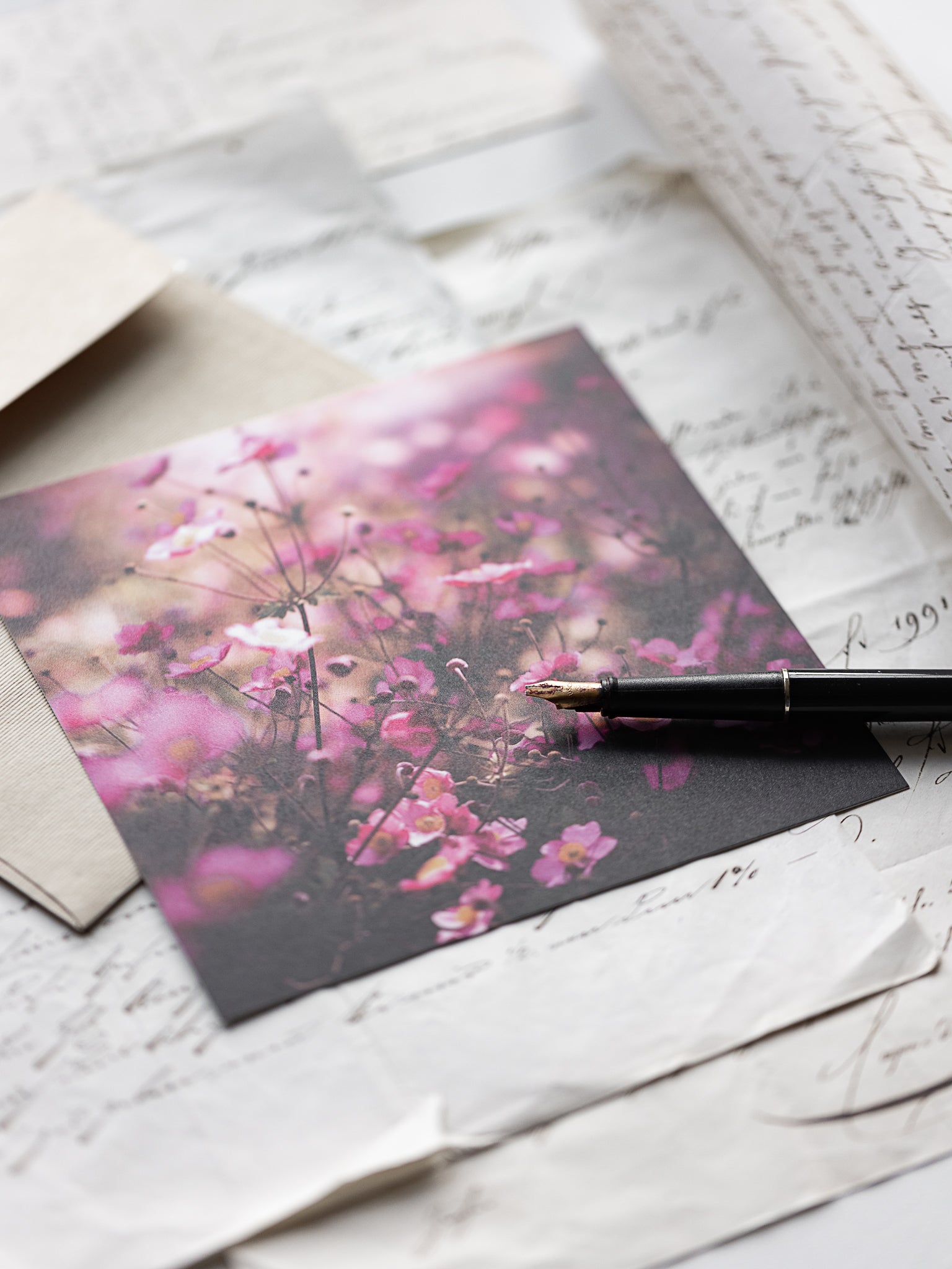 Einseitige Karte, mit weisser Rückseite. Ein feines, mattes Papier, welches beim Schreiben begeistert.