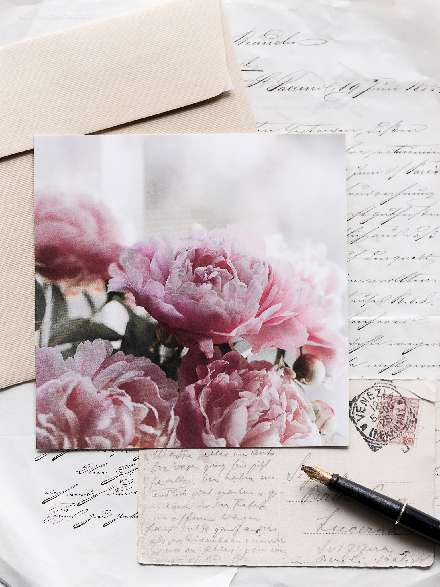 Einseitige Karte, mit weisser Rückseite. Ein feines, mattes Papier, welches beim Schreiben begeistert.