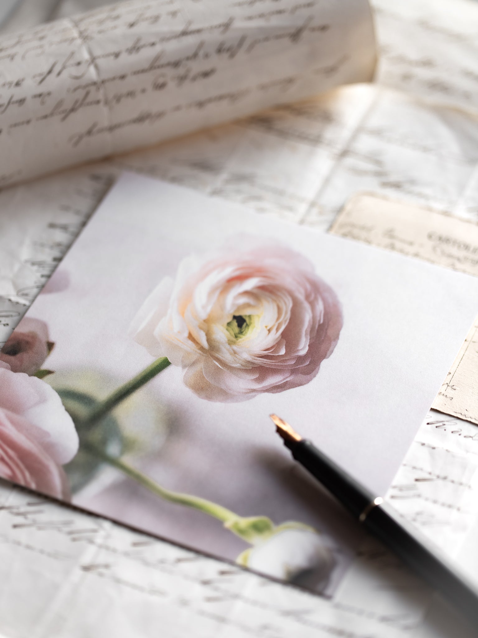 Einseitige Karte, mit weisser Rückseite. Ein feines, mattes Papier, welches beim Schreiben begeistert.