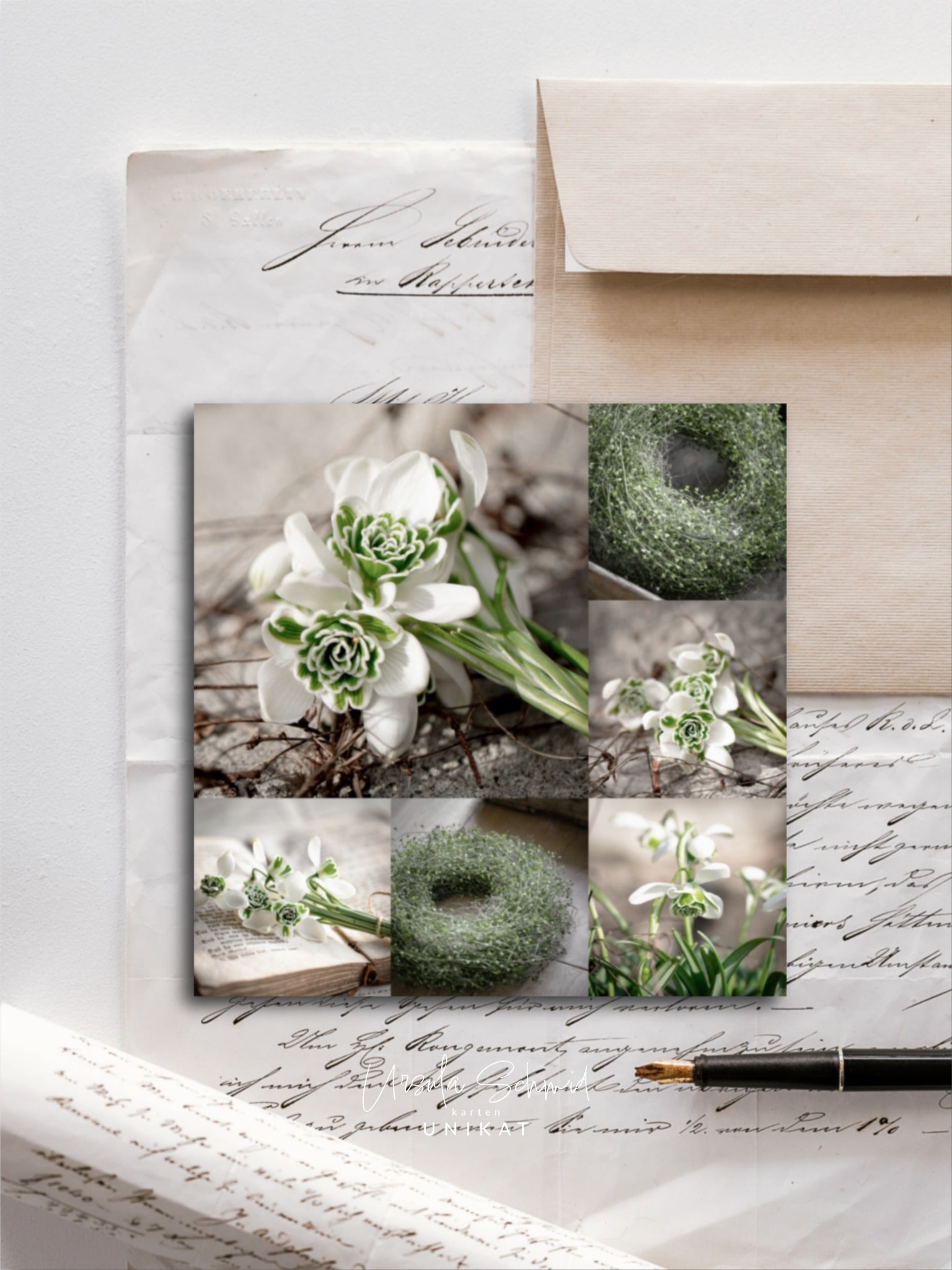 Einseitige Karte, mit weisser Rückseite. Ein feines, mattes Papier, welches beim Schreiben begeistert.