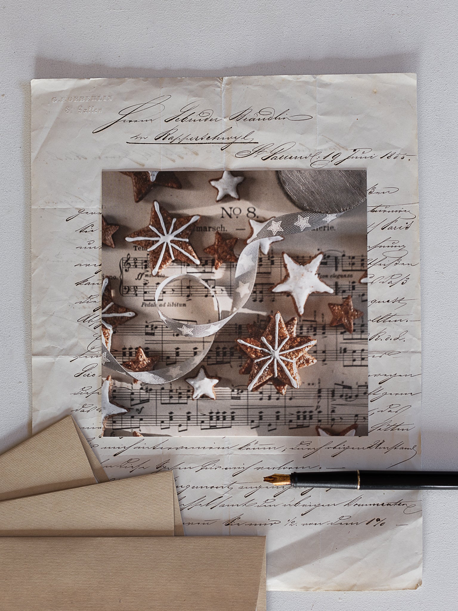 Einseitige Karte, mit weisser Rückseite. Ein feines, mattes Papier, welches beim Schreiben begeistert.