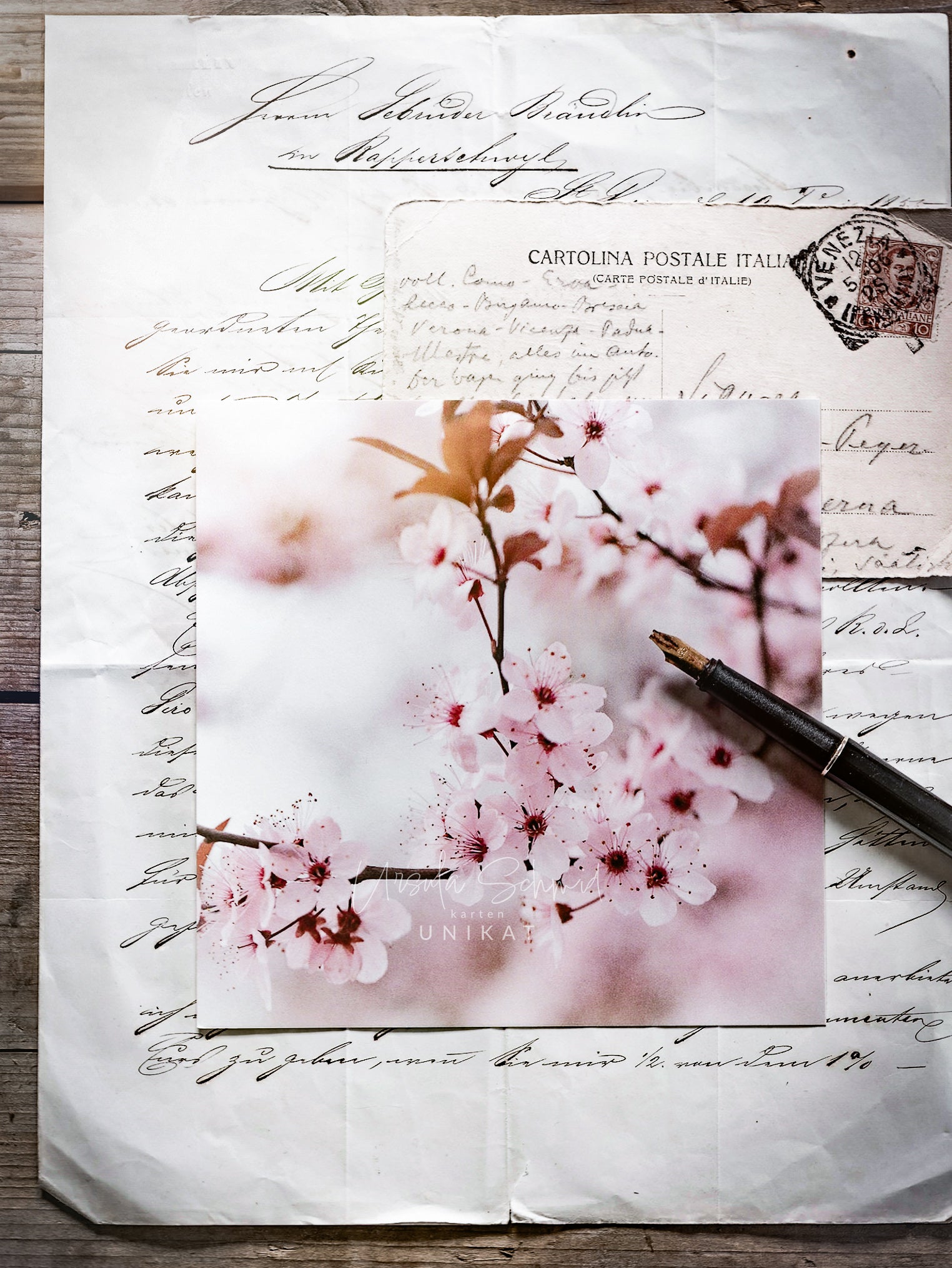 Einseitige Karte, mit weisser Rückseite. Ein feines, mattes Papier, welches beim Schreiben begeistert.