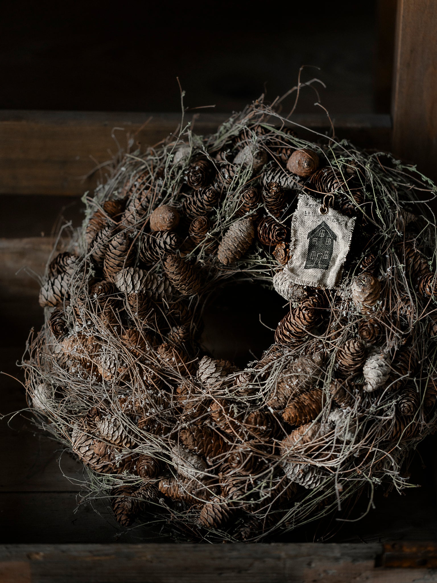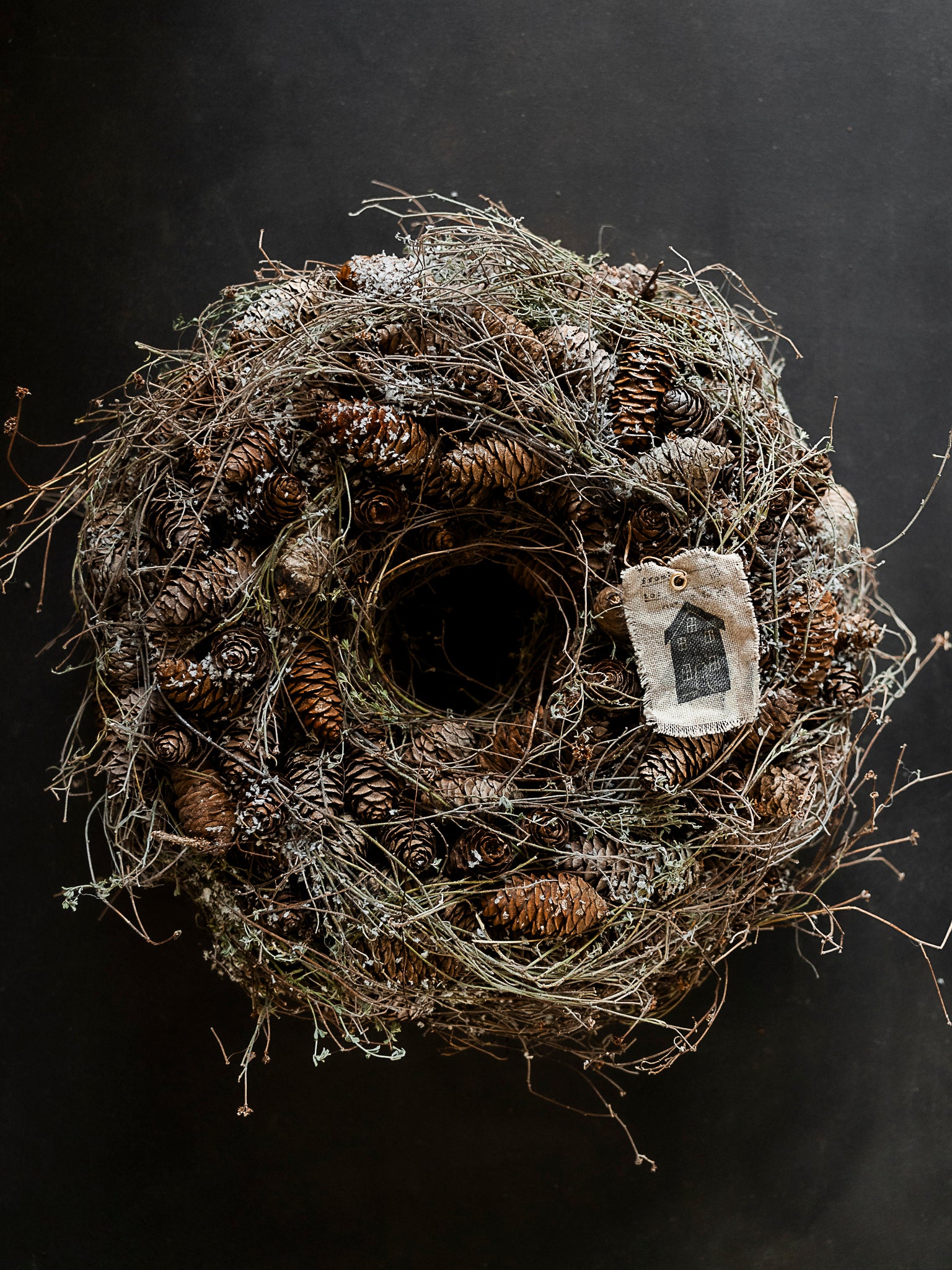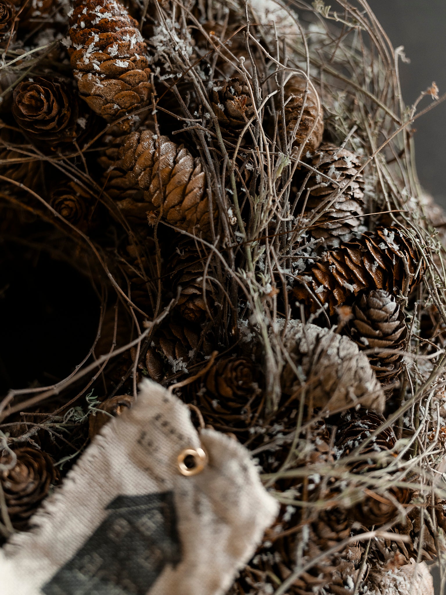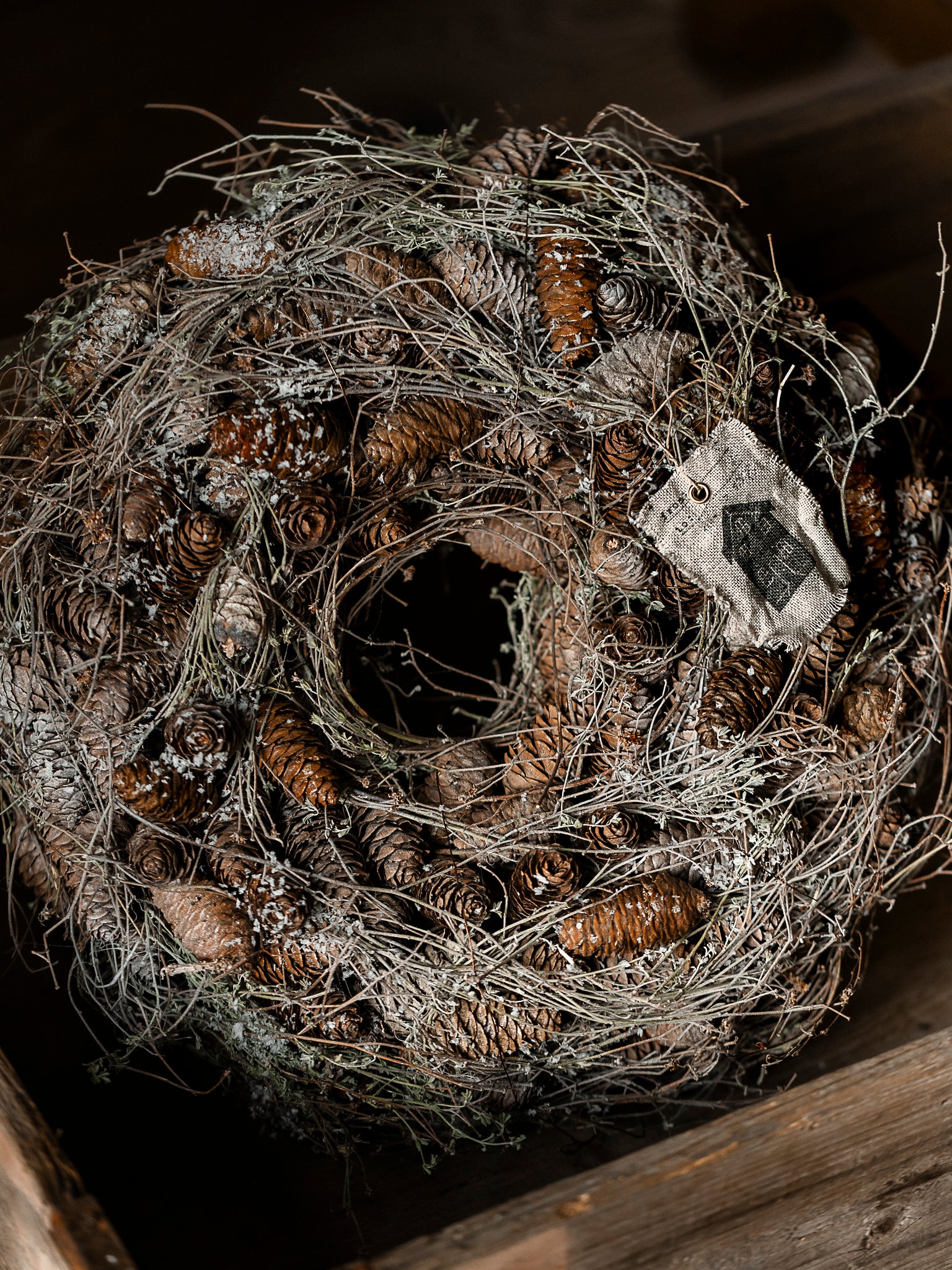 Dieser üppige Winterkranz besticht mit natürlichen Zapfen und einem zarten Hauch Schneegestöber. Die grosszügige Grösse macht ihn zum Blickfang an Tür oder Wand aber auch auf dem Adventstisch ist er eine wundervolle Winterdekoration. Mit seiner rustikalen Eleganz bringt dieser Kranz die Magie der Winterzeit direkt zu dir nach Hause und schafft eine warme, einladende Stimmung für die kalte Jahreszeit.