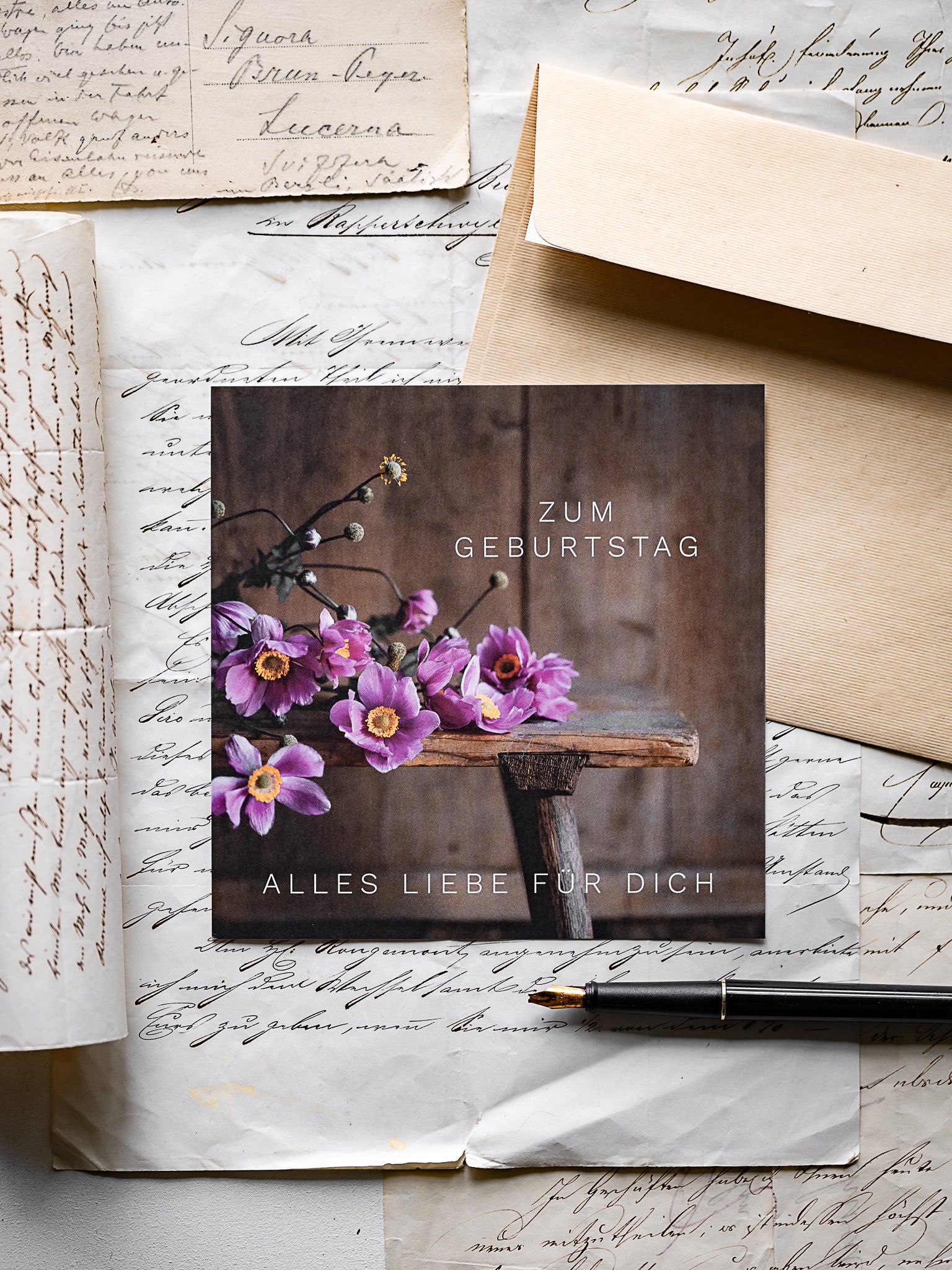 Einseitige Karte, mit weisser Rückseite. Ein feines, mattes Papier, welches beim Schreiben begeistert.
