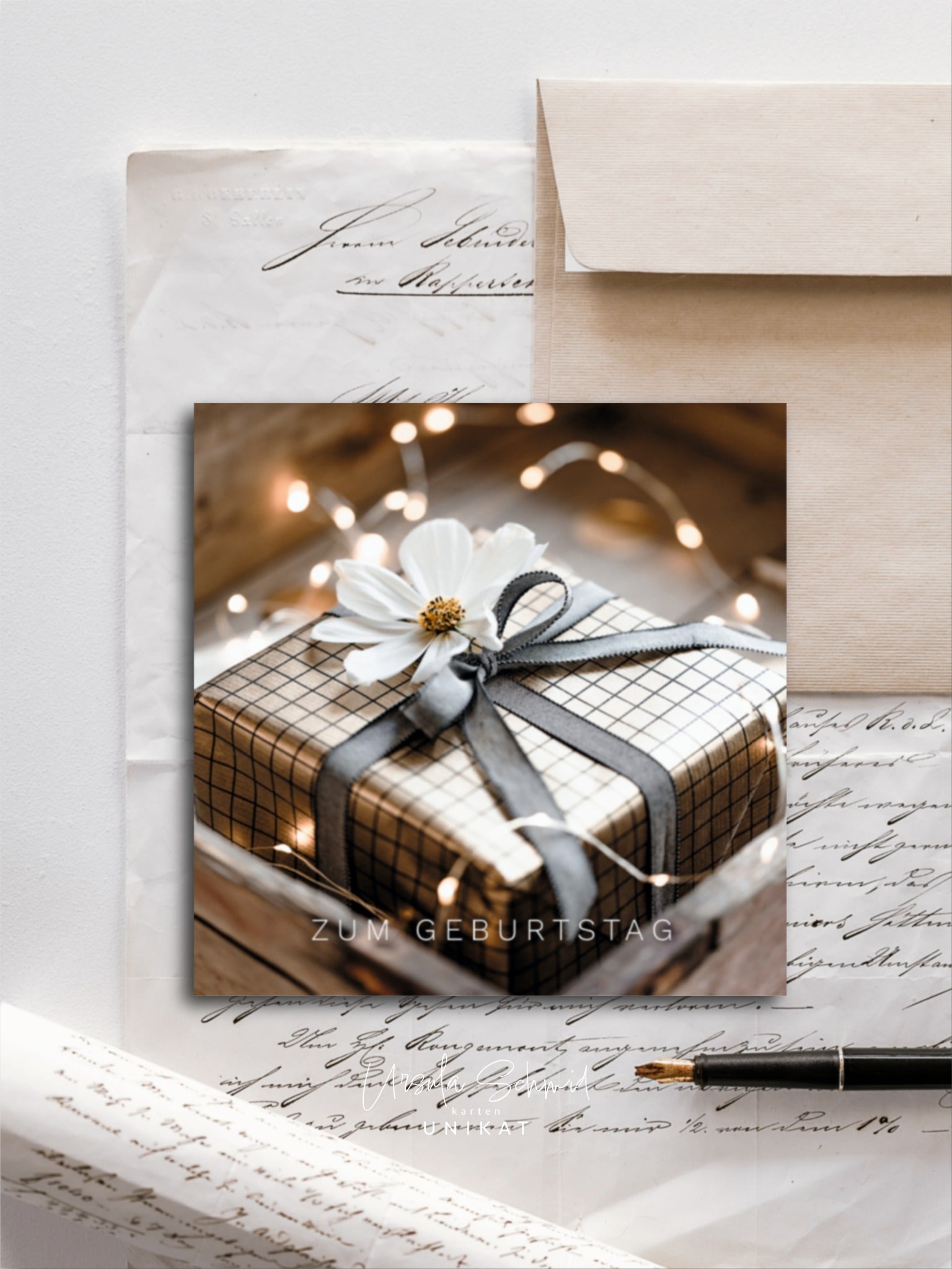 Einseitige Karte, mit weisser Rückseite. Ein feines, mattes Papier, welches beim Schreiben begeistert.